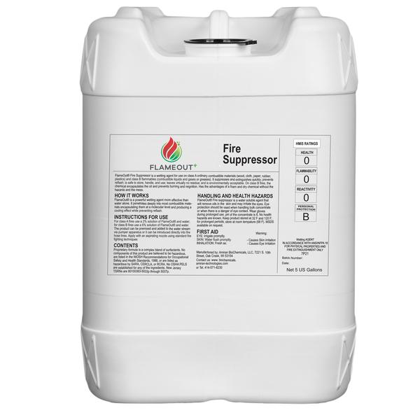 FlameOut+ Fire Suppressor is an extremely effective fire suppressing agent for use on Class A and B fires. It is a 100% Organic/Non-toxic (No PFOA, PFOS, PFAS), Noncorrosive/HALON replacement. Registered with the Environmental Protection Agency and the U.S. Department of Forestry.